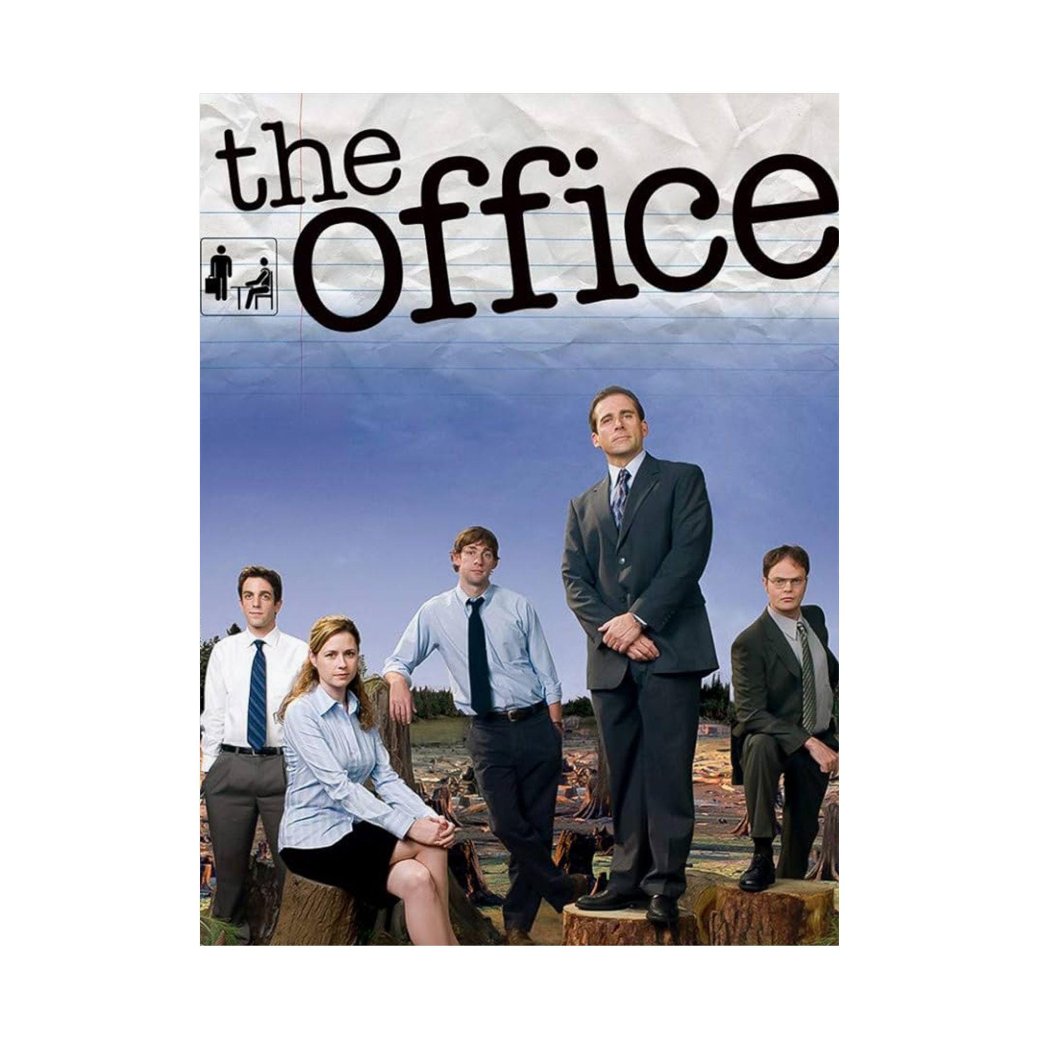 A matte vertical poster featuring characters from The Office TV show, including Michael, Jim, Pam, Dwight, and Ryan. Perfect for fans of the award-winning comedy show looking to add a touch of humor to their space. Ideal for adults who enjoy The Office and want to display their love for the show. Relevant for birthdays, holidays, and special occasions.