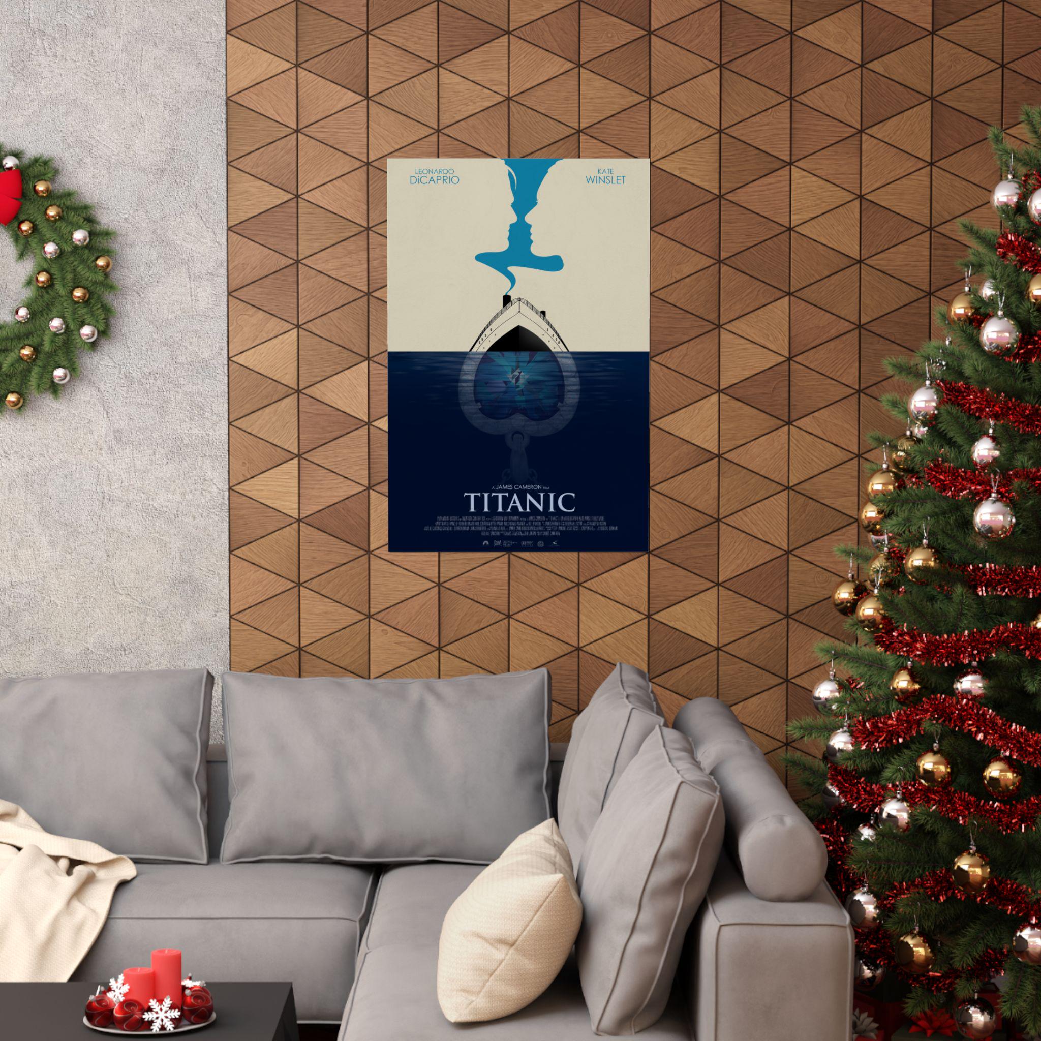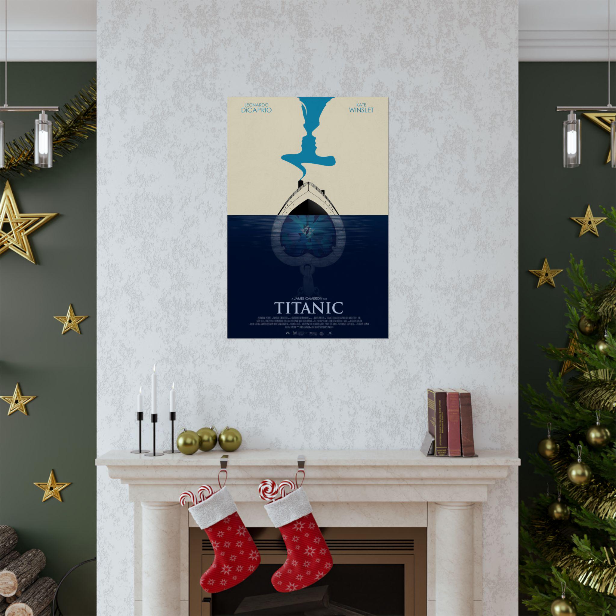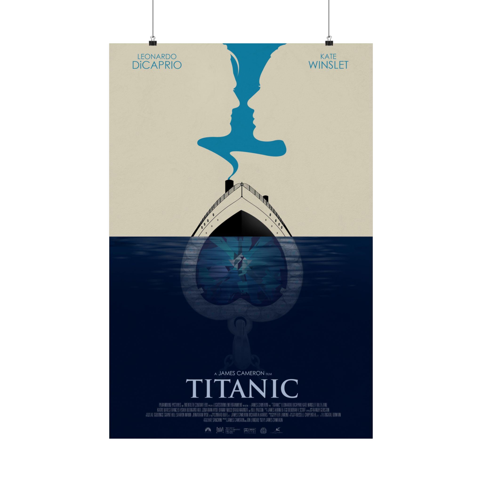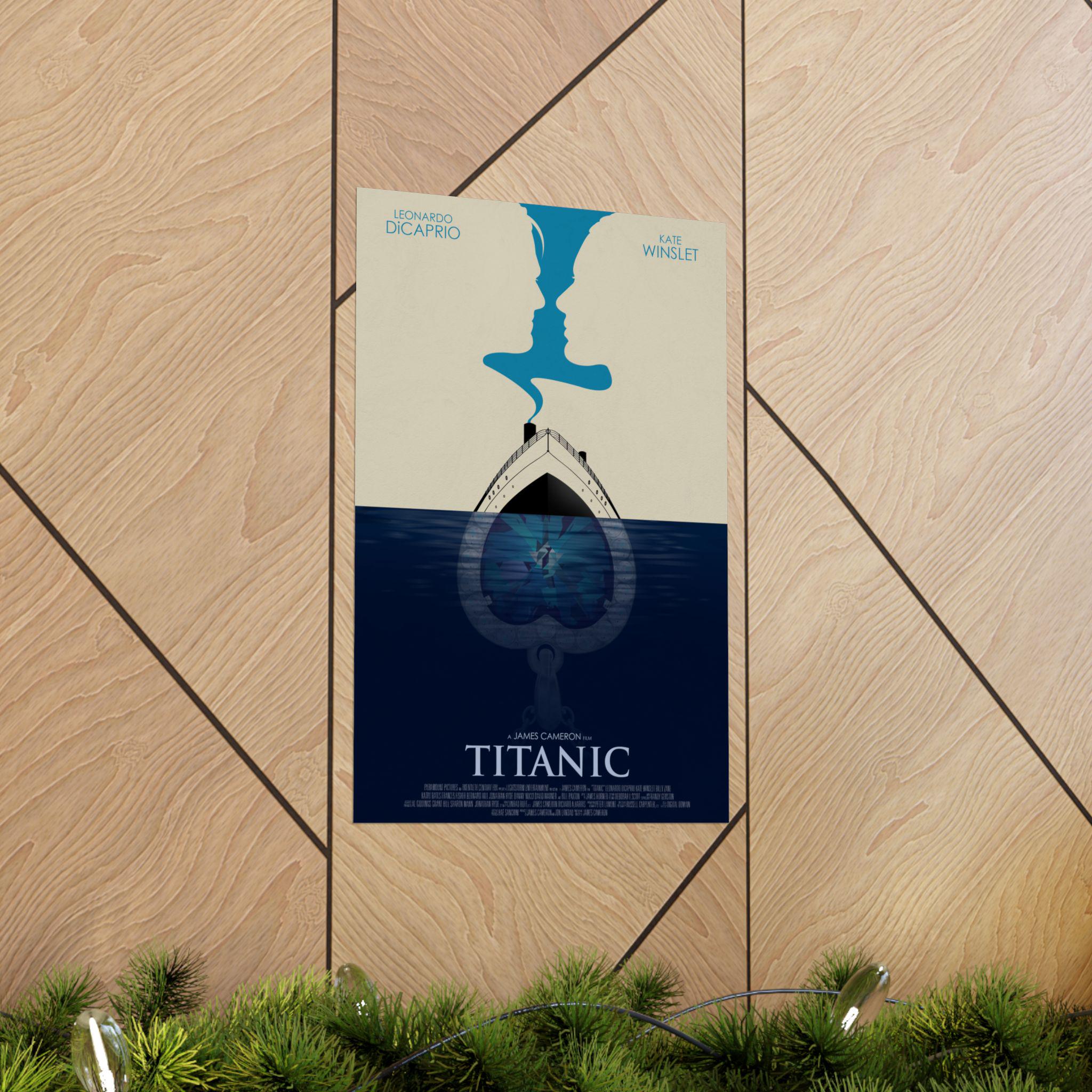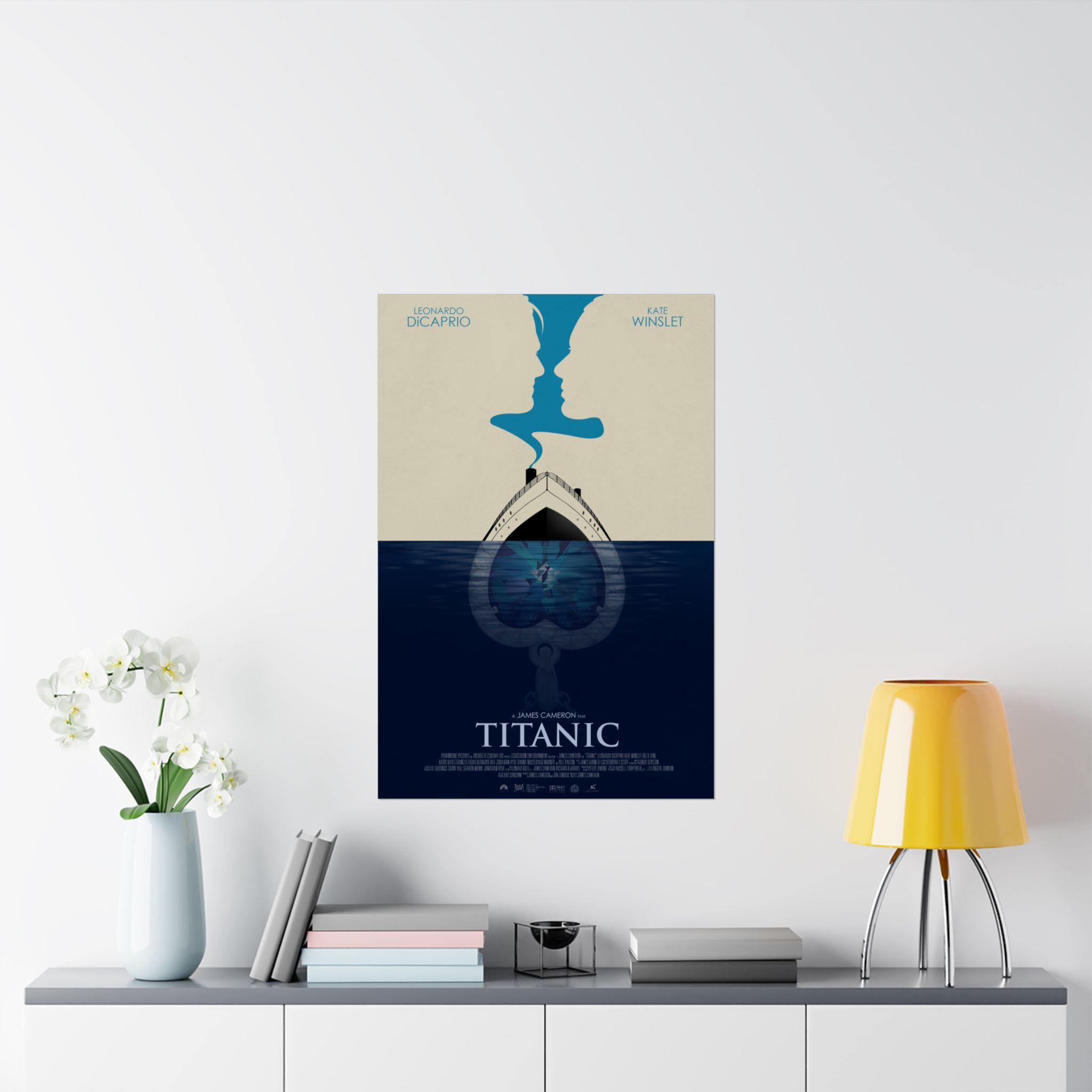 Immerse yourself in the world of Titanic with this fan-made matte vertical poster featuring Leonardo DiCaprio and Kate Winslet. Perfect for movie buffs and fans of James Cameron's epic film. Ideal for decorating a home theater or movie-themed room. Relevant for movie nights, fandom celebrations, and Titanic anniversary commemorations.