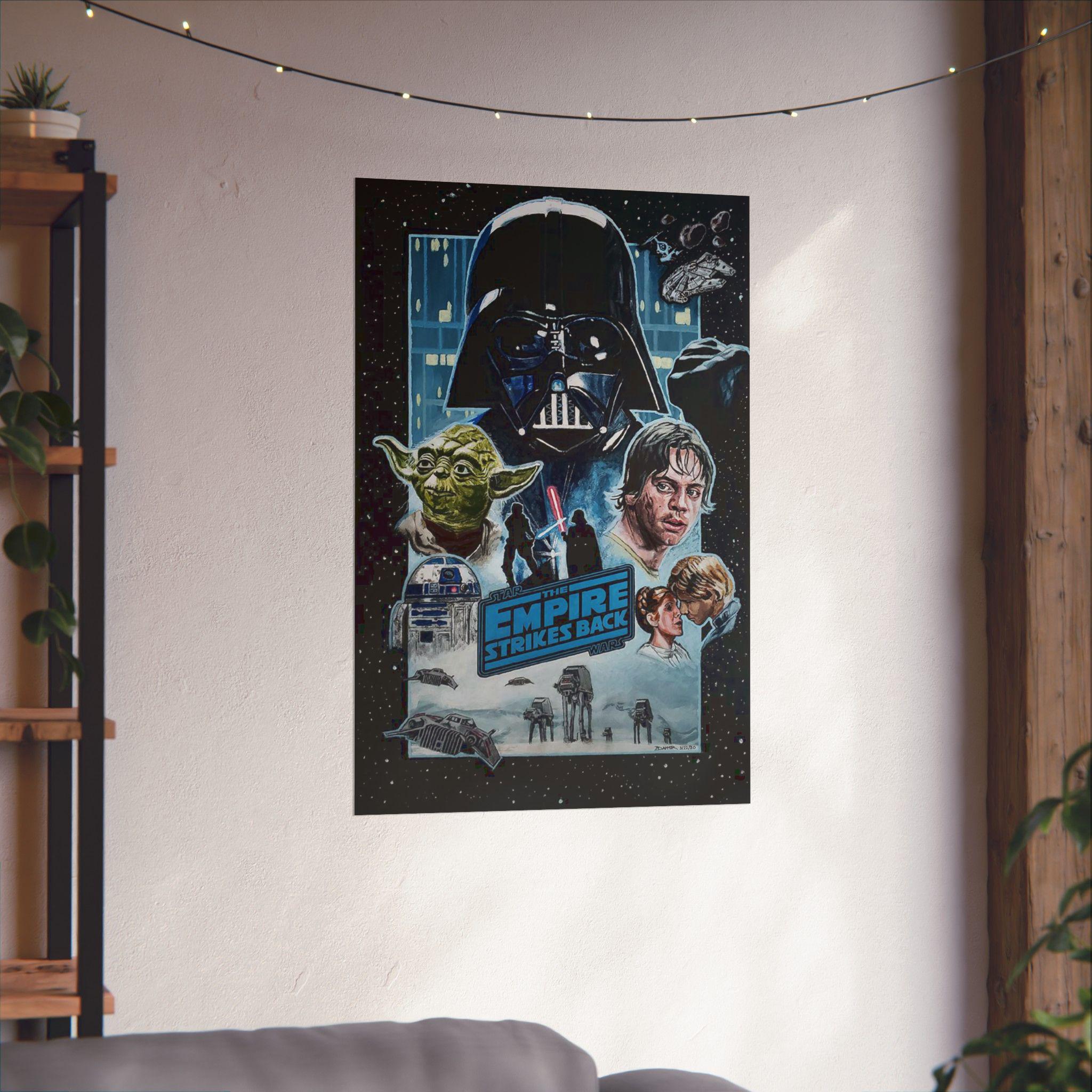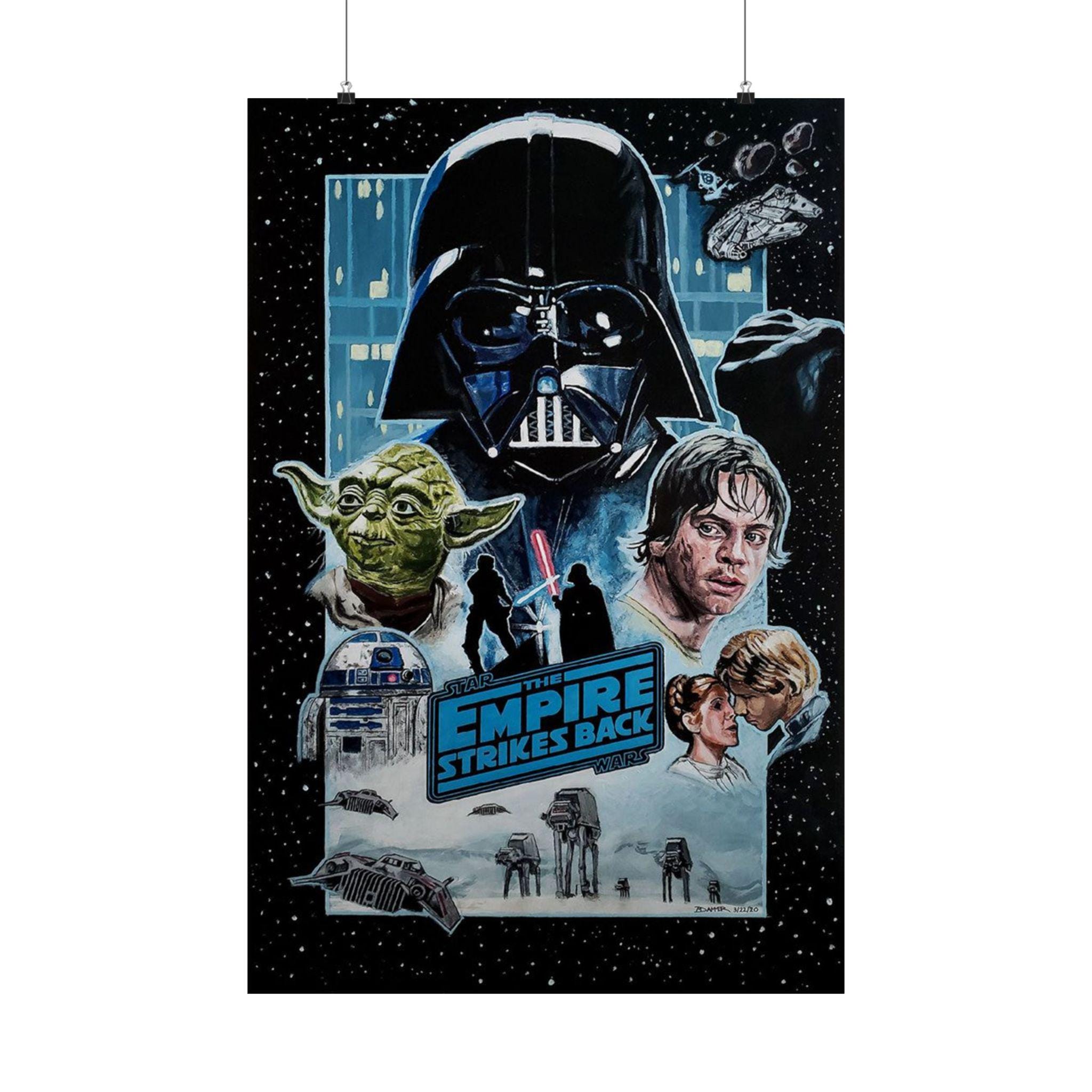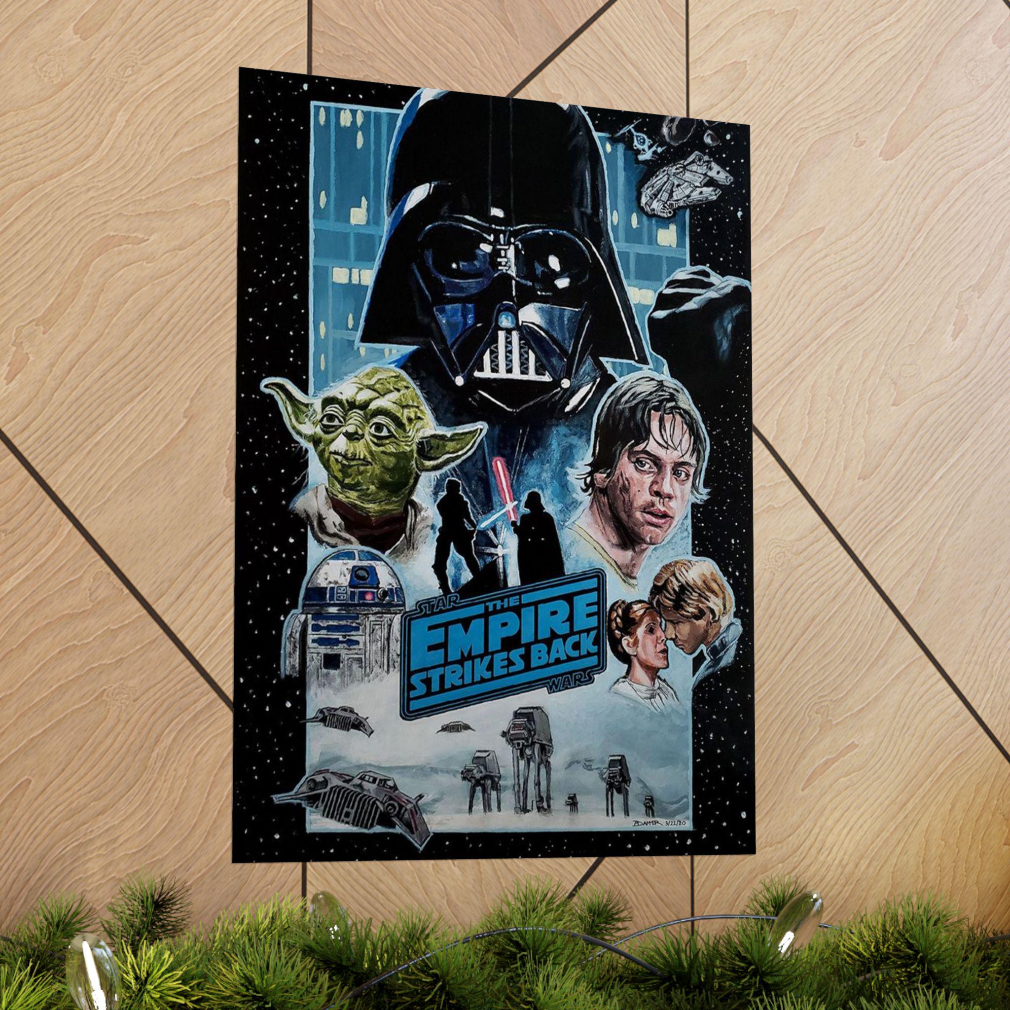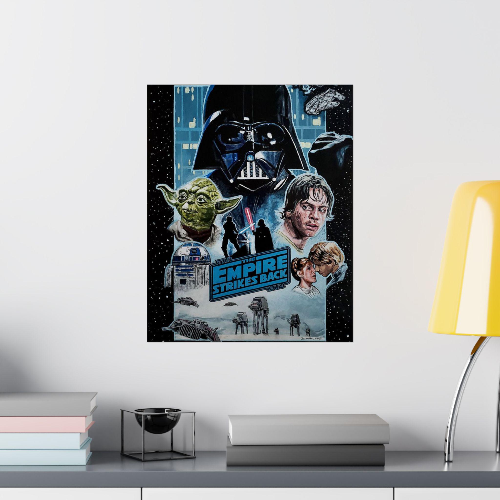 Star Wars The Empire Strikes Back Poster, featuring Darth Vader, Luke Skywalker, Princess Leia, Han Solo, Yoda Fan Art poster for all Star Wars fans. Perfect for adding a touch of the galaxy far, far away to your home decor. Ideal gift for Star Wars enthusiasts and collectors. Relevant for birthdays, holidays, and special occasions.