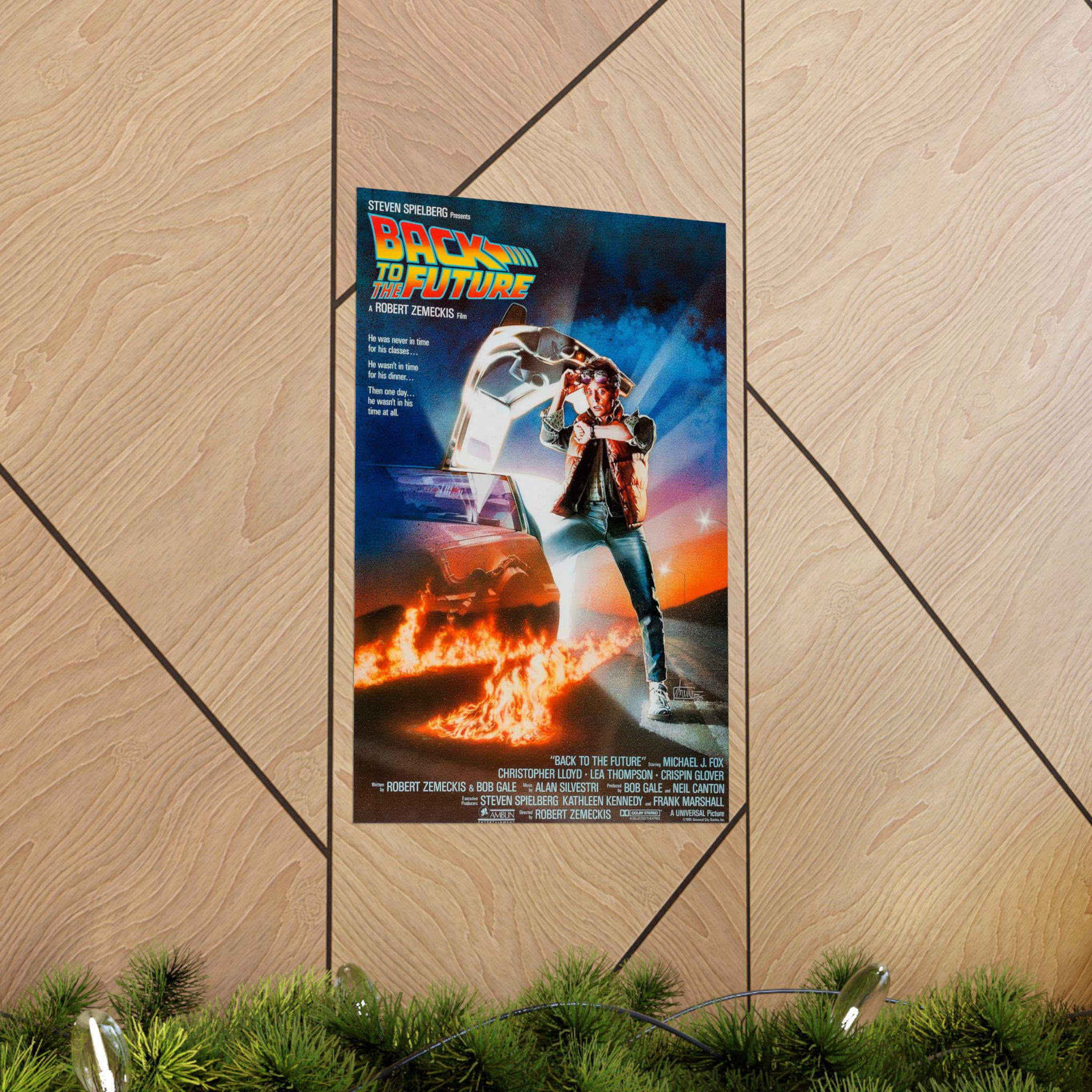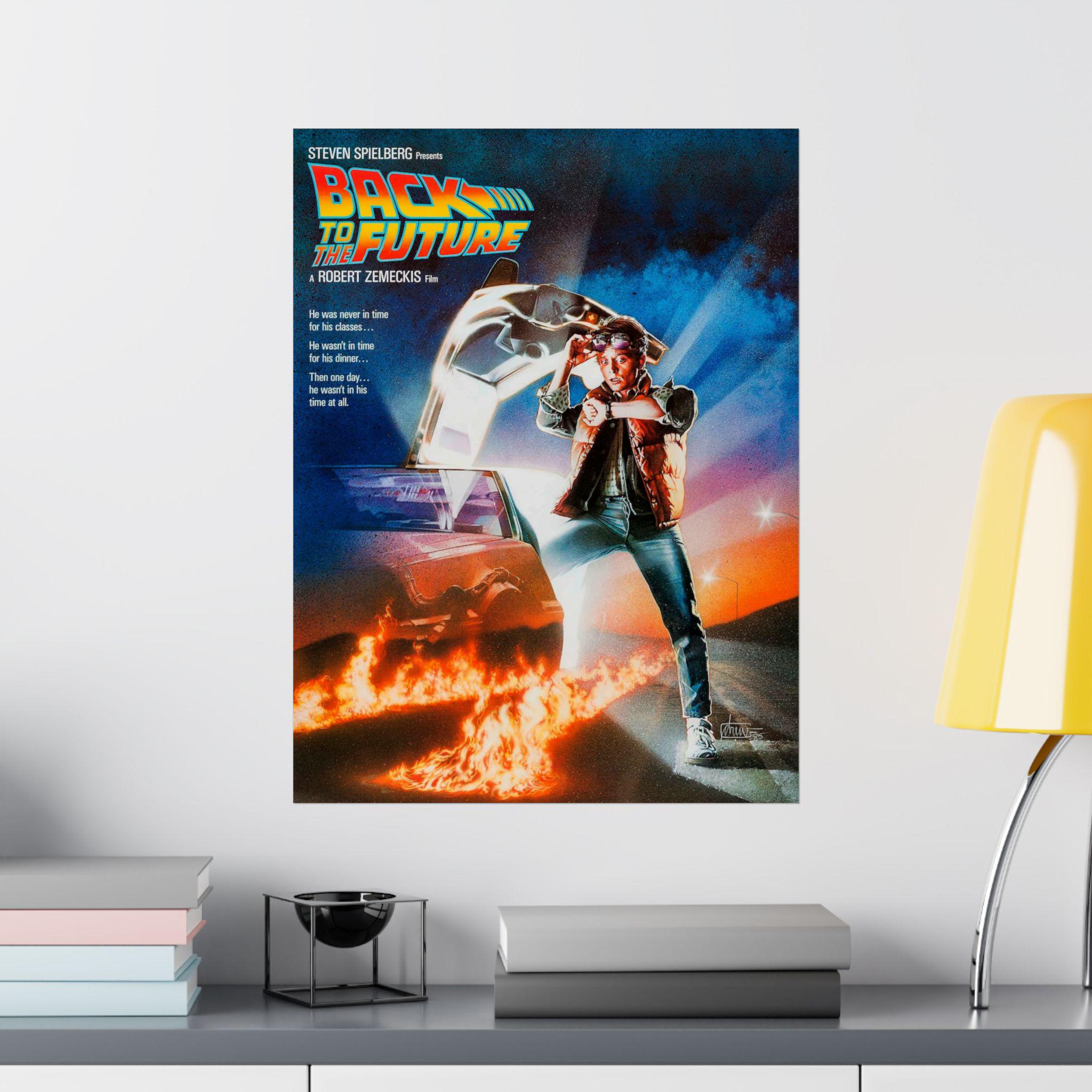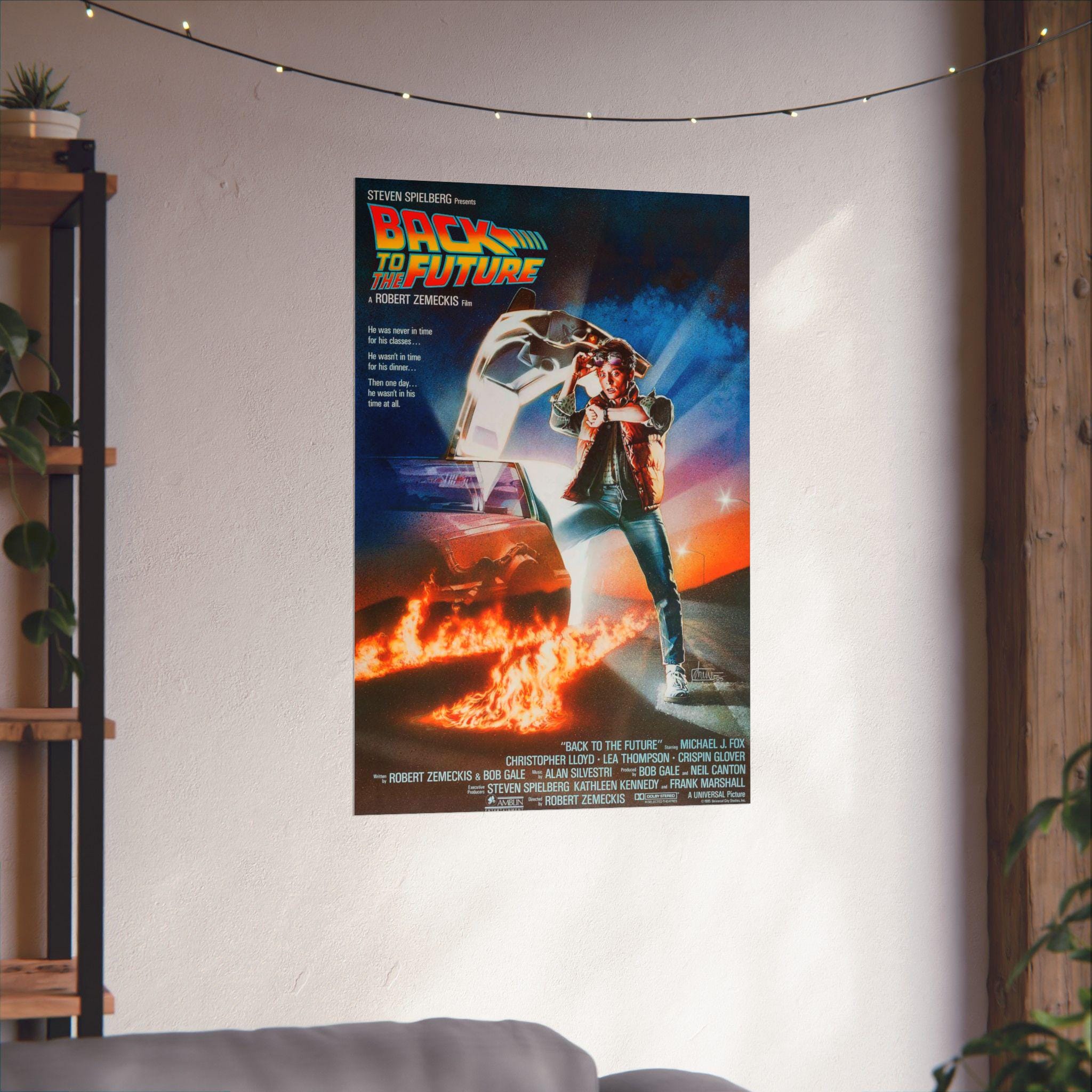A high-quality movie poster featuring the iconic Back To The Future movie with Michael J Fox as Marty McFly and Christopher Lloyd as Doc Brown. Perfect for fans of the classic film looking to add a touch of nostalgia to their space. Ideal for movie enthusiasts, collectors, and anyone celebrating movie nights or 80s-themed parties.