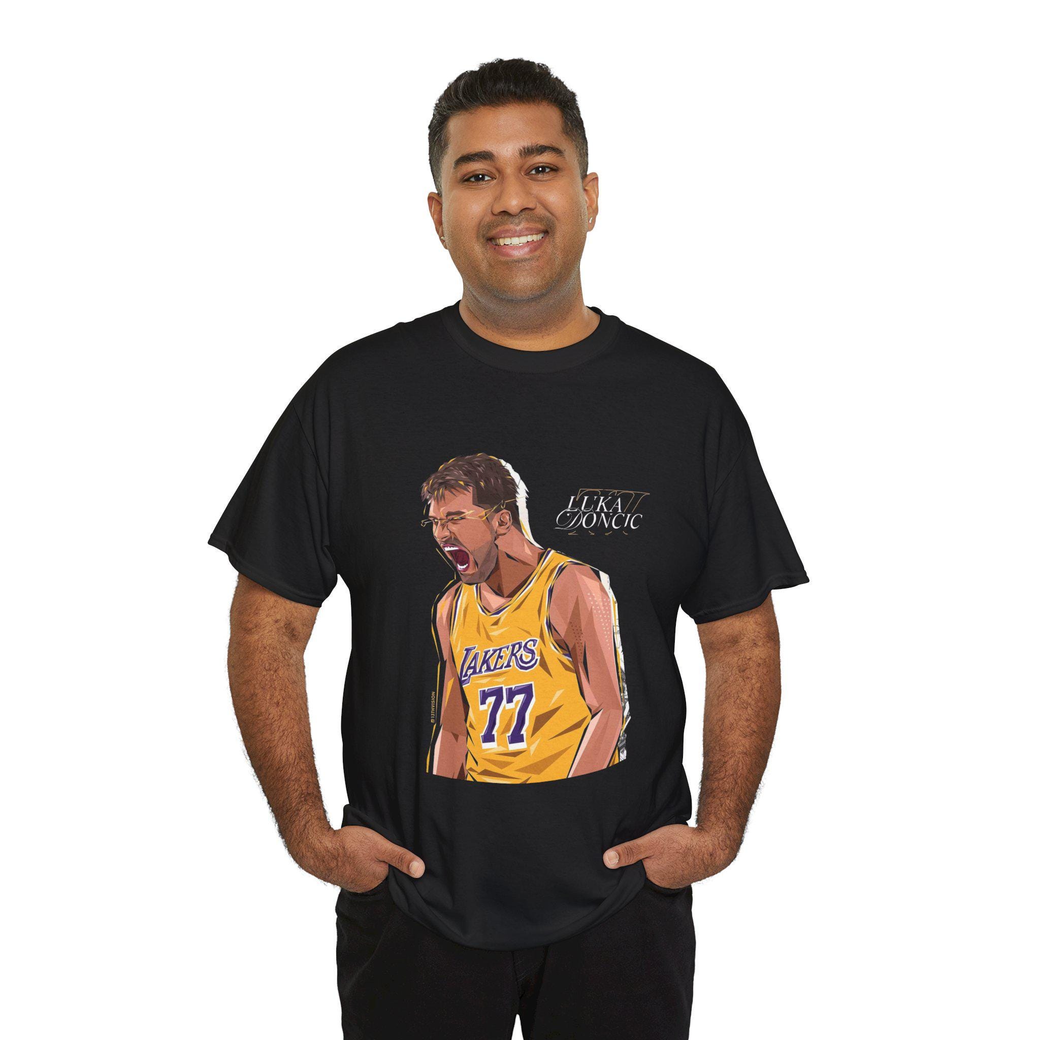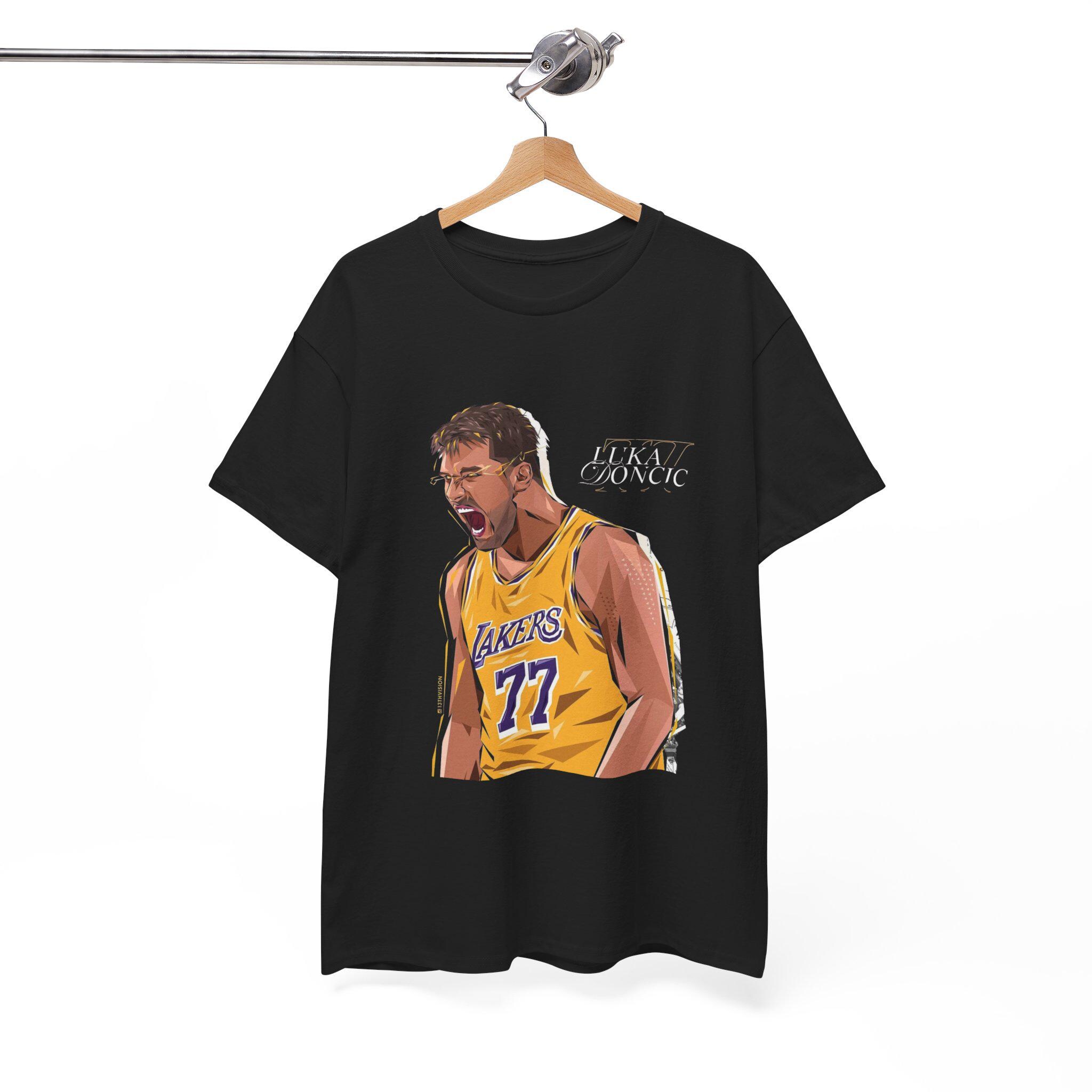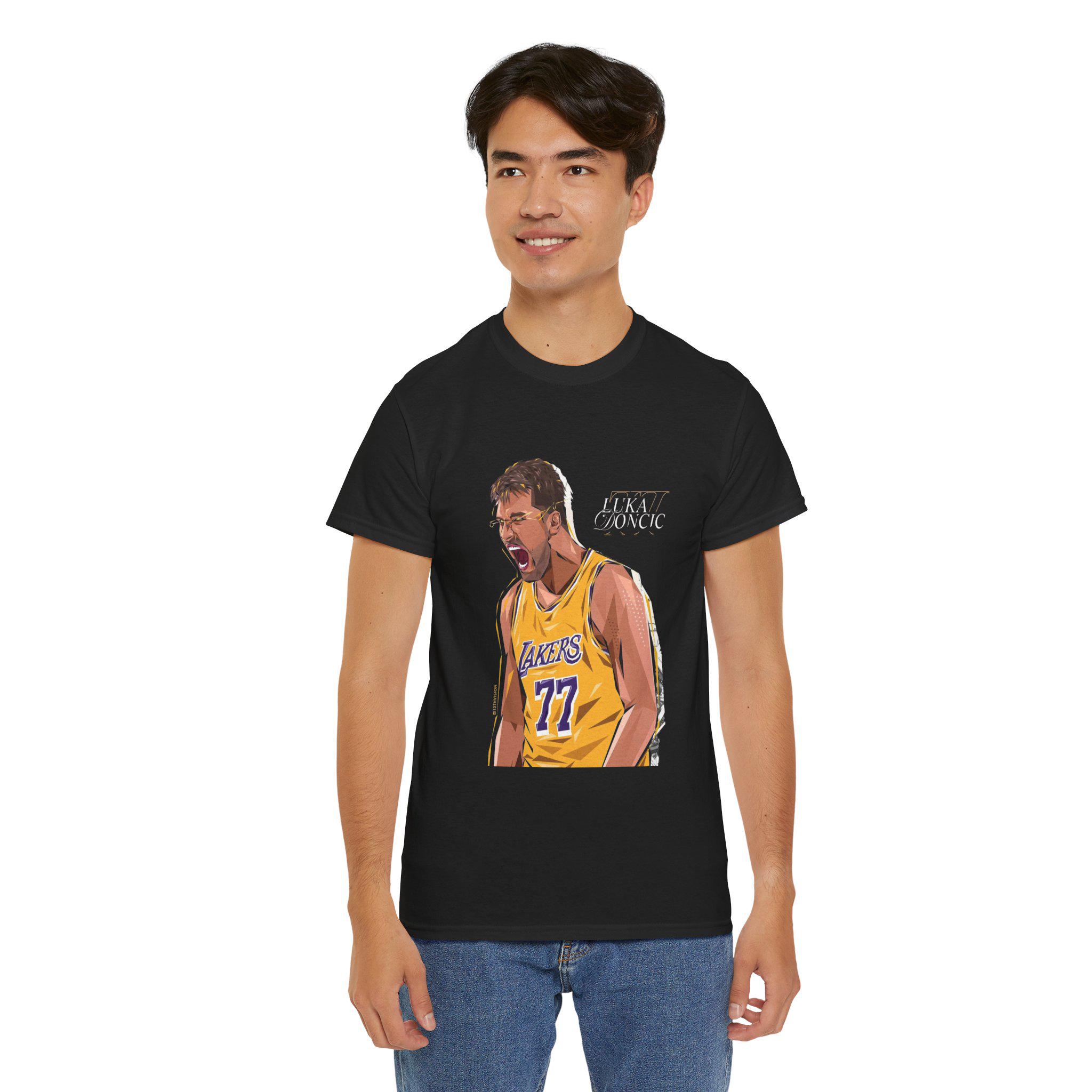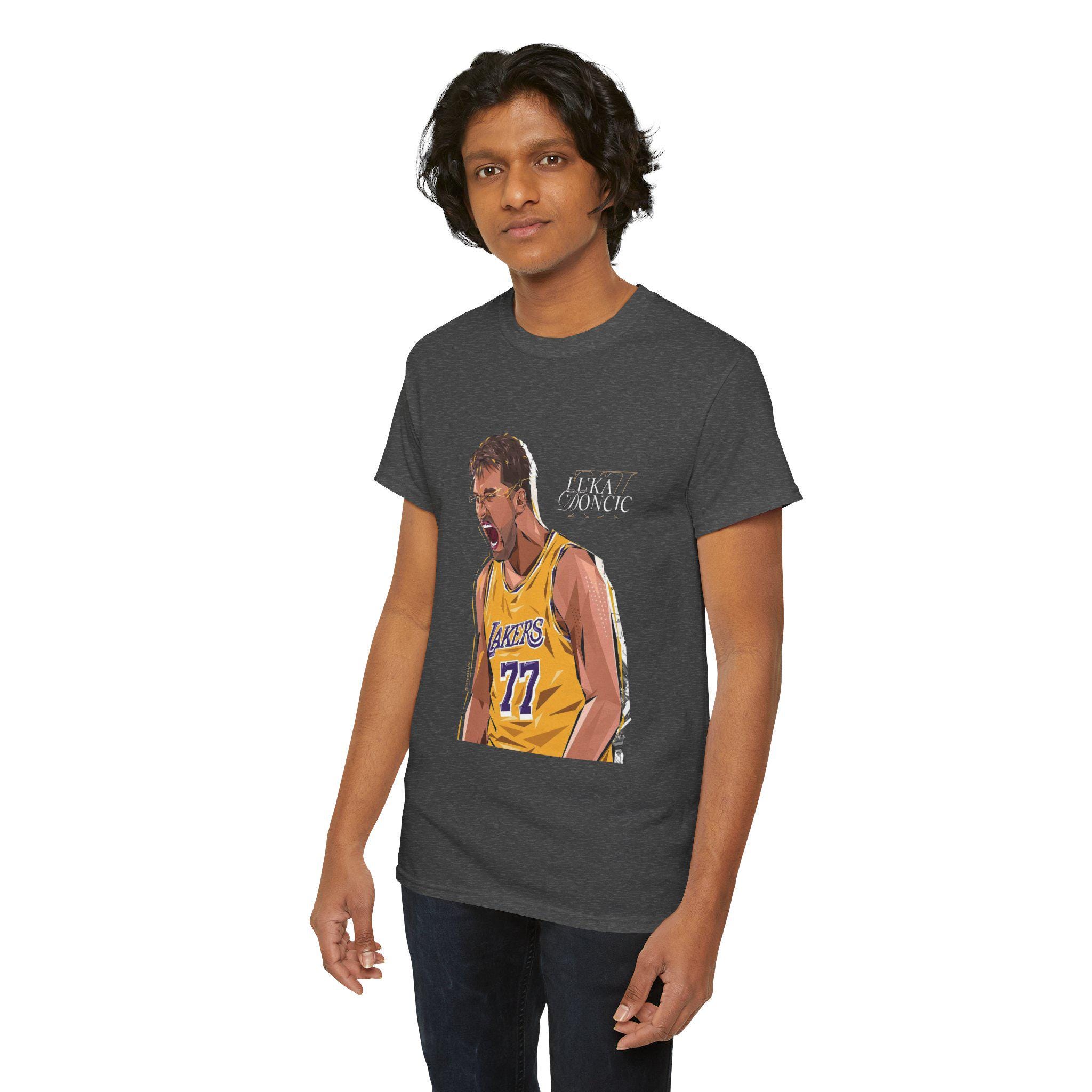 Laker fans and Luka Doncic fans, come grab this Unisex Heavy Cotton Tee, perfect for sports enthusiasts and casual wear lovers alike. The vibrant design captures the spirit of teamwork and sportsmanship, making it an ideal addition to your wardrobe. Whether you're lounging at home, cheering on your favorite team at a game, or simply enjoying a day out with friends, this tee keeps you comfortable and stylish. Great for gifting on occasions like birthdays, sporting events, or holidays, it's a thoughtful choice for anyone who appreciates sports culture. Its classic fit and soft fabric ensure you'll feel as good as you look, fitting seamlessly into your everyday life.