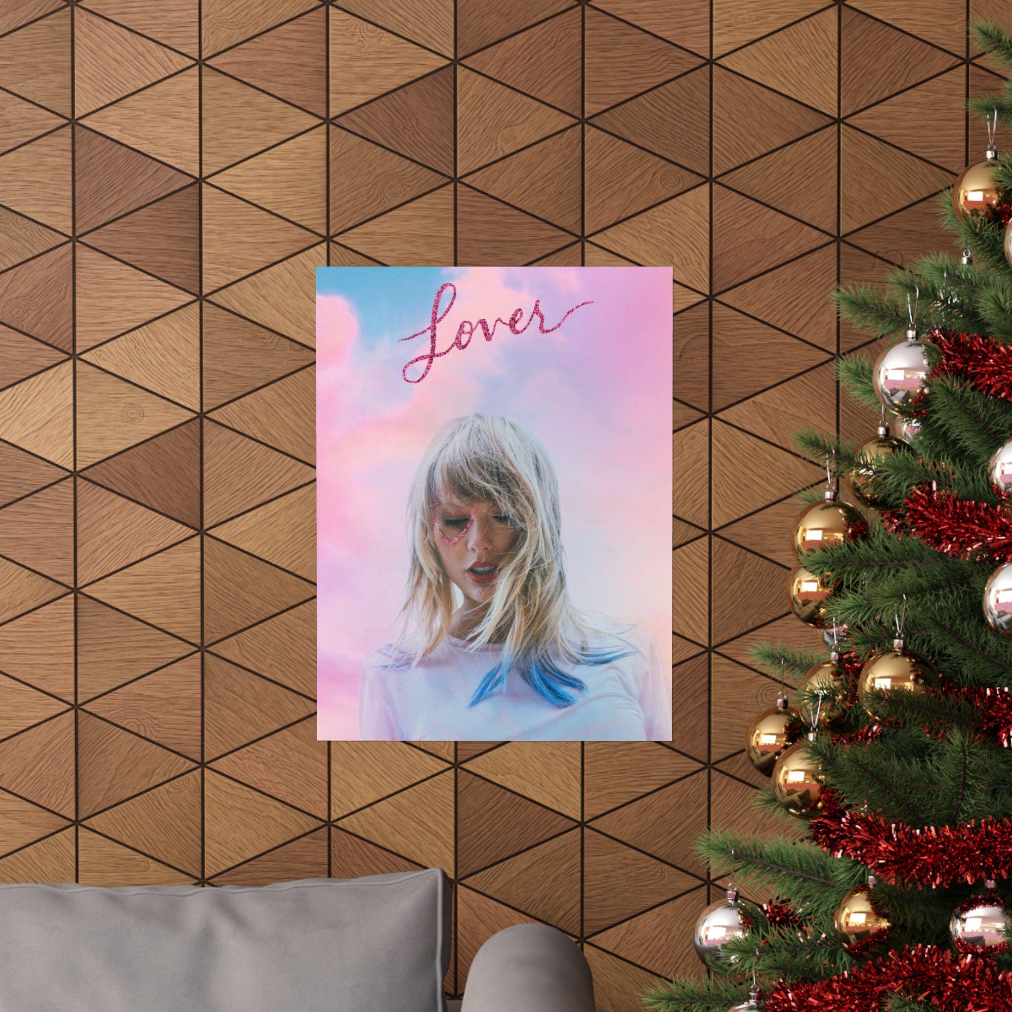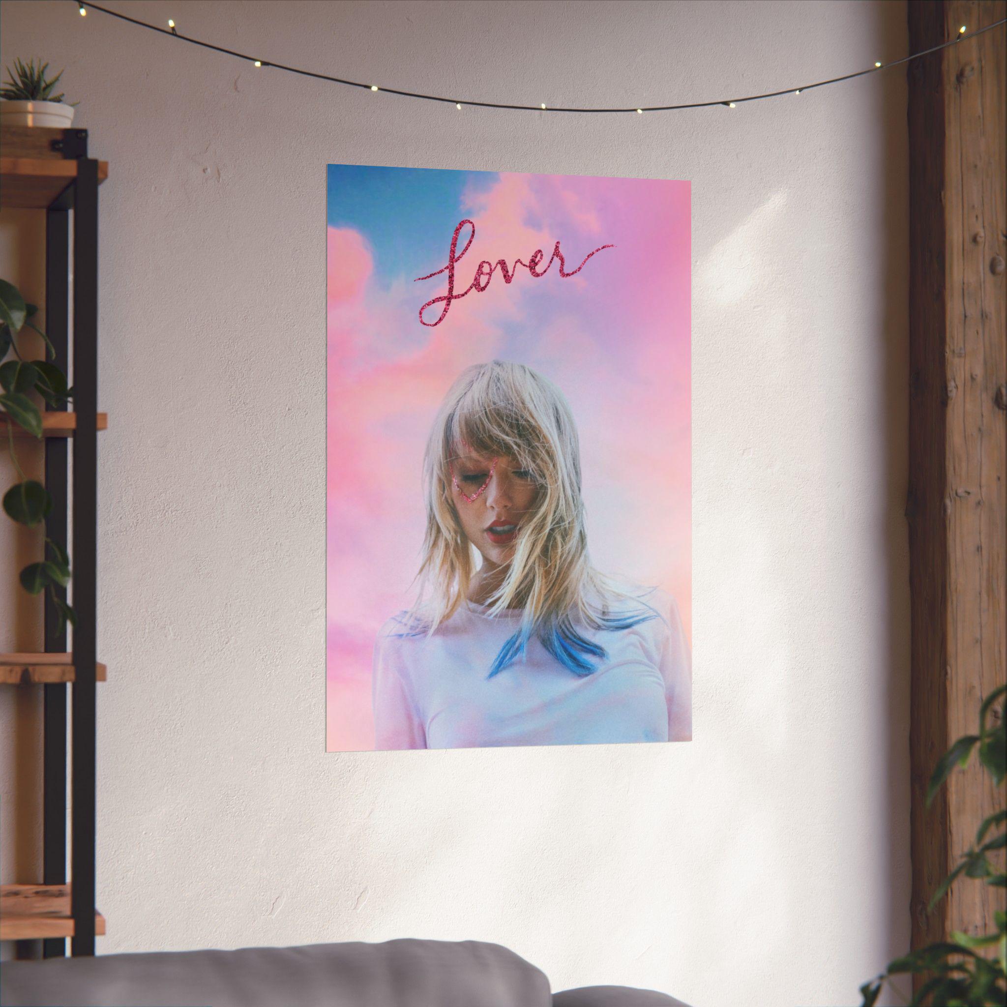 A matte vertical poster celebrating Taylor's Lover (2019) album — a quiet, artful tribute for devoted fans. Printed on museum-grade archival paper with Giclée inks, the artwork holds bright, true color while the matte finish absorbs glare and adds a velvety, gallery-like presence. Hang it in a bedroom, listening nook, or studio to anchor playlists, lyric memorization, and slow Sunday mornings. The poster’s calm texture and precise color reproduction let album-era details shine without distraction. Sized to fit common frames and available in many dimensions, it blends into curated walls and stacked print displays alike.